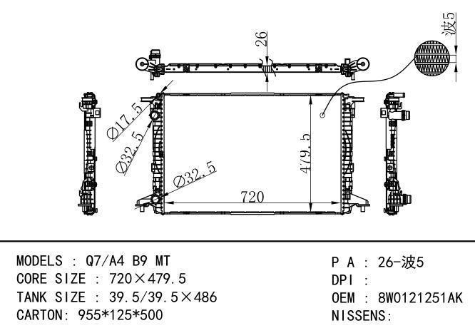8W0121251AK Car Radiator for AUDI Q7/A4 B9