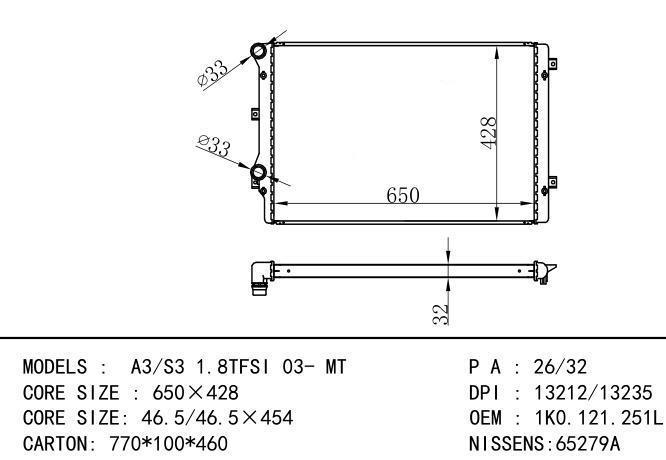 1K0.121.251L,1K0121253L,5K0121251J Car Radiator for AUDI A3-S3 1.8TFSI '