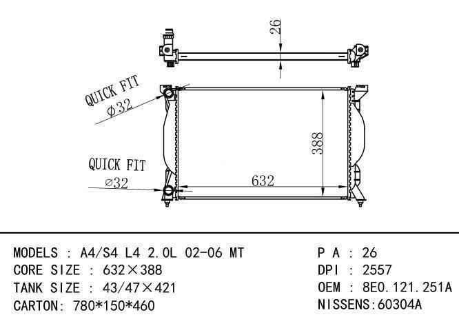 8E0.121.251Q,8E0121251K,8E0121251Q Car Radiator for AUDI A4-S4 2.5TDi