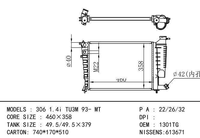 1301.G8/1331.RP/*1301.G8 Car Radiator for PEUGEOT PEUGEOT 405 1.6 1580 XU5M-2C'