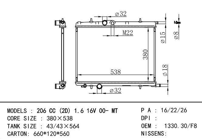 1330.E0/1330.G8/96370433/*1330.G8 Car Radiator for PEUGEOT 307 2.0HDi '