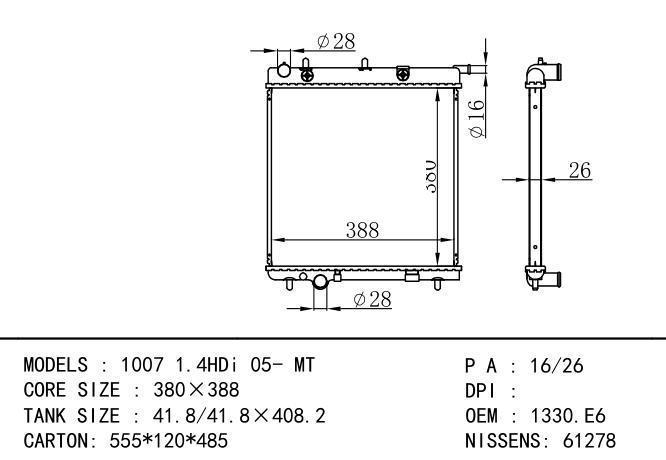 1330000000*1330000000 Car Radiator for PEUGEOT CITROEN C2-1007 1.4HDi