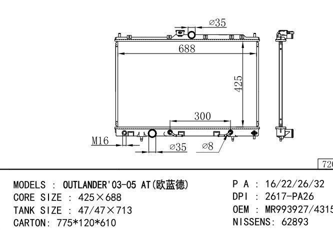 MR993742 Car Radiator for MITSUBISHI OUTLANDER'