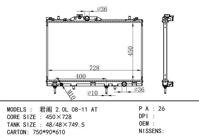 Car Radiator for MITSUBISHI 君阁 2.0L 08-11 AT