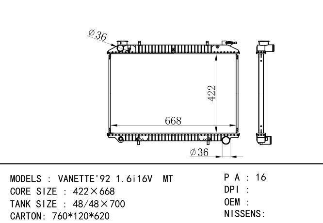 Car Radiator for NISSAN VANETTE 92 1.6i 16V