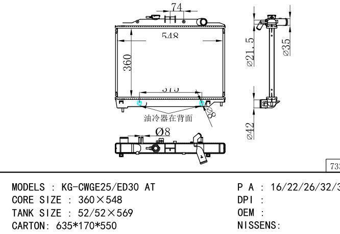 Car Radiator for NISSAN KG-CWGE25/ED30 AT