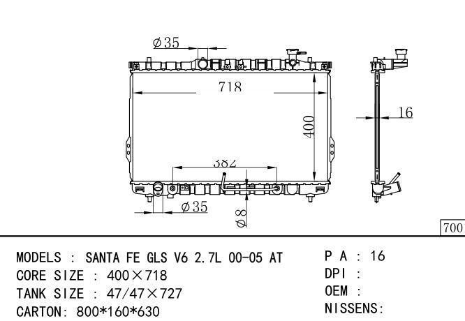 Car Radiator for Hyundai SANTA FE GLS V6 2.7L 00-05 AT