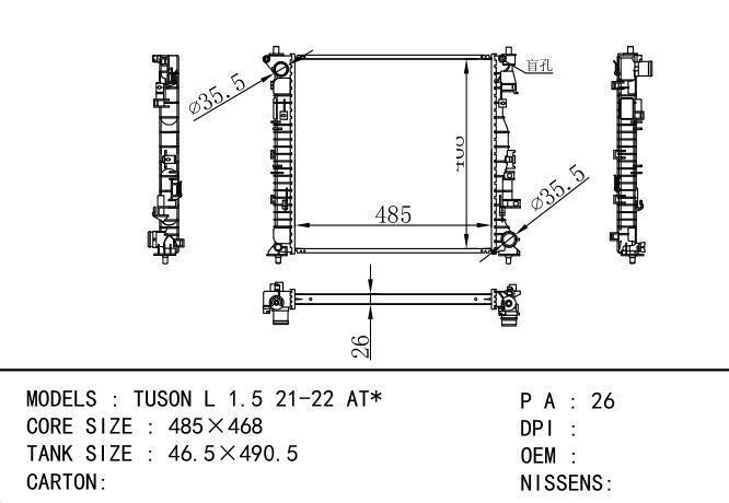 Car Radiator for Hyundai TUSON L 1.5 21-22 MT*
