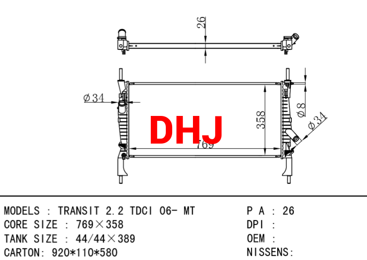 FORD TRANSIT 2.2 TDCI 06- MT RADIATOR