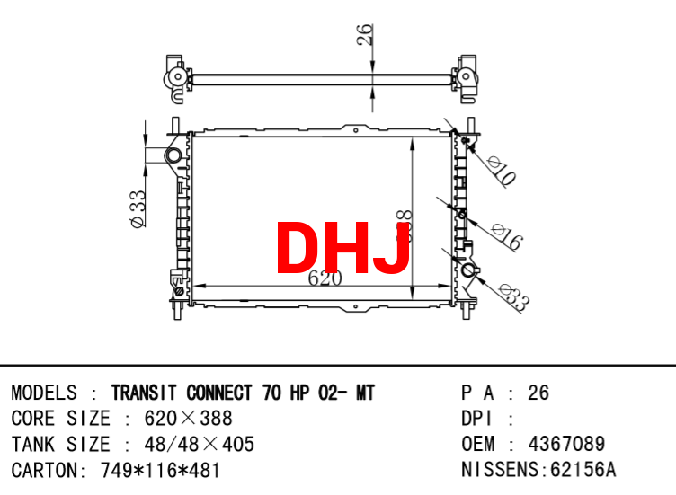 FORD TRANSIT radiator 4367089 4367092 2T148005CC 2T148005AD