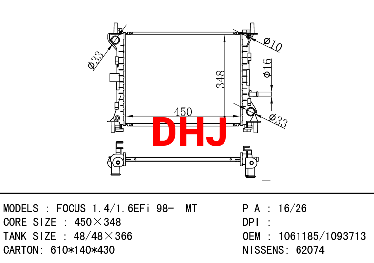 FORD FOCUS RADIATOR 1061185 98AB8005JB 1093713 98AB8005JC 98AB8005JD 1132658