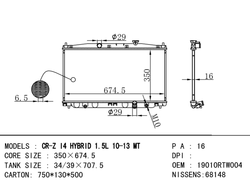 HONDA Radiator 19010RTW004 Insight CRZ 14 HYBRID 1.5L 10-13 MT