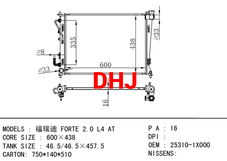 KIA radiator 25310-1X000 福瑞迪 FORTE 2.0 L4 AT/MT
