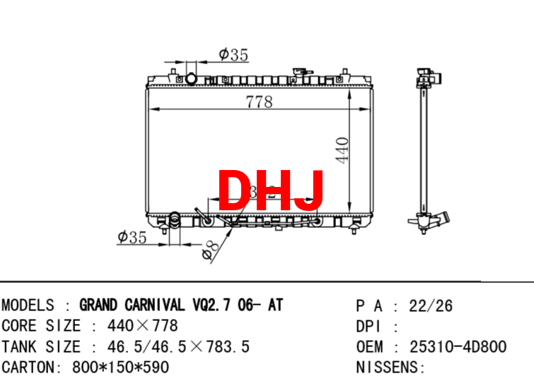 KIA radiator 25310-4D800 CARNIVAL/GRAND CARNIVAL III (VQ) 2.7 V6 AT/MT