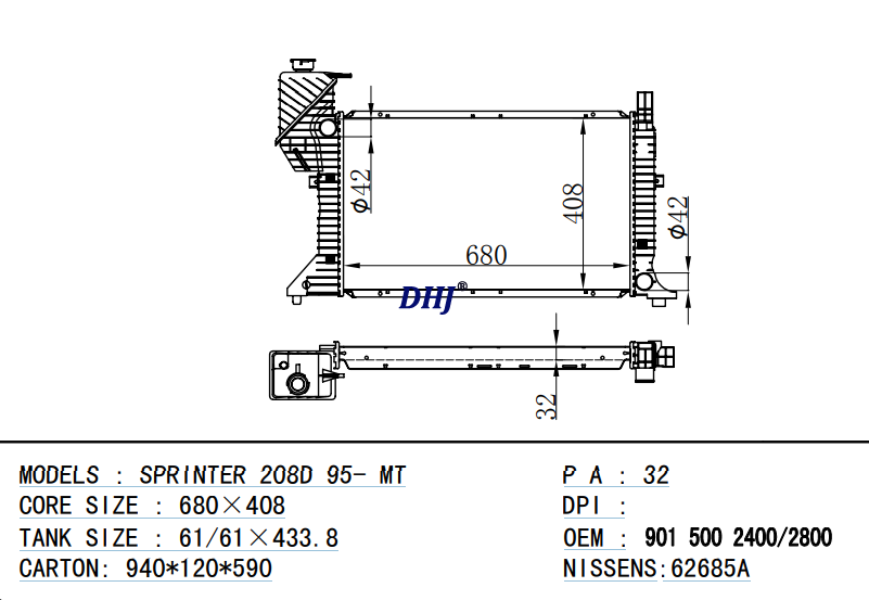 BENZ SPRINTER RADIATOR 9015002400 9015003100 9015003300 A9015002400 A9015003100 A9015003300