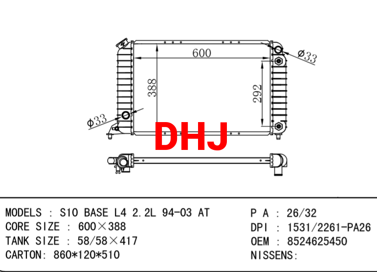 GM DODGE LUV BASE L4 2.2L 98-05 MT RADIATOR
