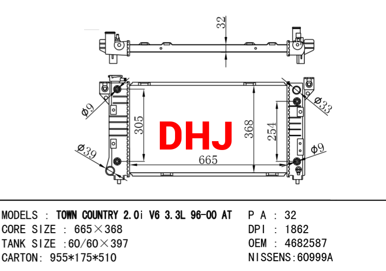 CHRYSLER radiator 4682587 4682588 GRAND VOYAGER III (GS) 3.8 i AWD