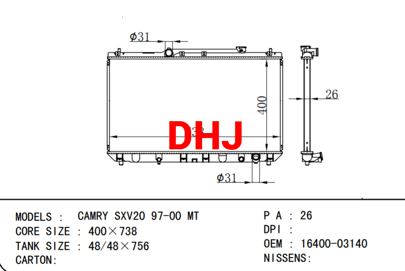 TOYOTA CAMRY RADIATOR OEM 16400-03151 16400-03150 16400-7A301 16400-03152 16400-03142 16400-7A300 16400-03140 16400-7A291