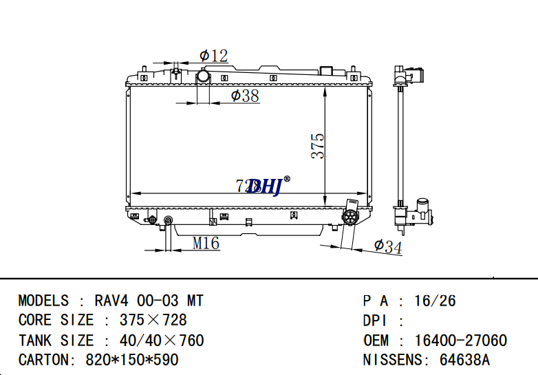 16400-27060 16400-27061 TOYOTA RAV4 00-03 MT radiator