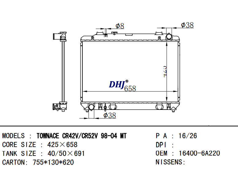 16400-6A220 TOYOTA TOWNACE CR42V /CR52V 98-04 MT radiator