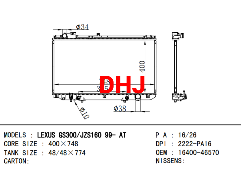 LEXUS GS300/JZS160 CAR radiator 16400-46570 16400-46580